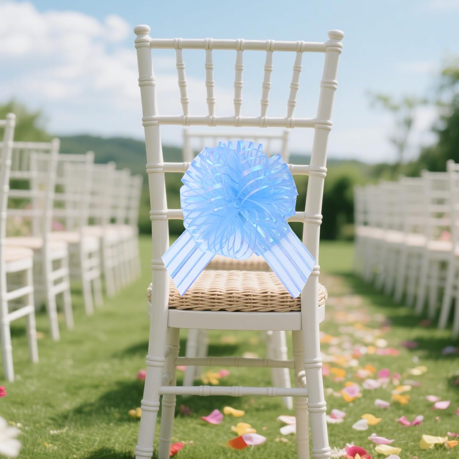 12 Pcs 6 Inch Large Organza Pull Bow Ribbon – Elegant Gift Bows for Wedding Decorations, Christmas Wrapping, Birthday Parties, Car Decor, Gift Baskets, and Valentine's Day Packaging(Light Blue)