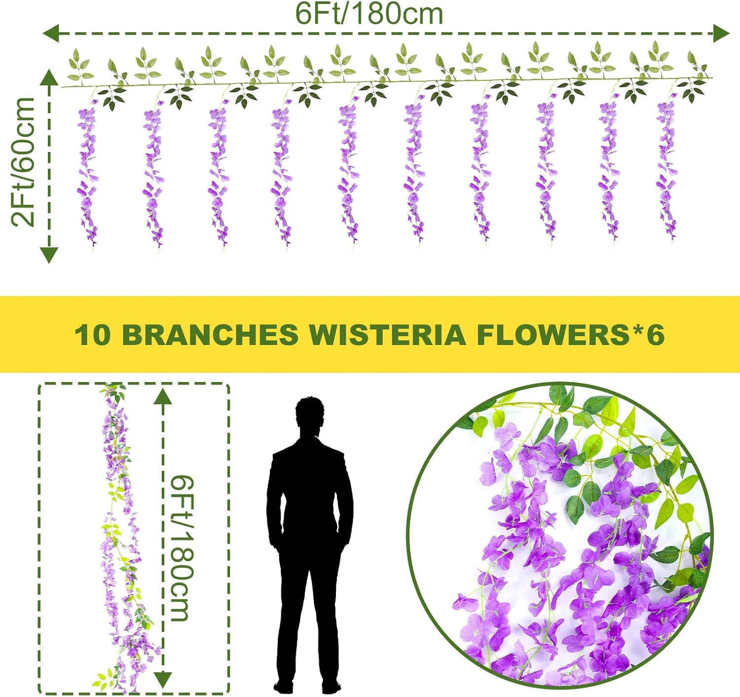 Wisteria Artificial Flowers Garland,10Pcs Total 60ft Silk Fake White Wisteria Flowers Hanging for Home Garden Wedding Arch Party Indoor Outdoor Decor(10,Purple)