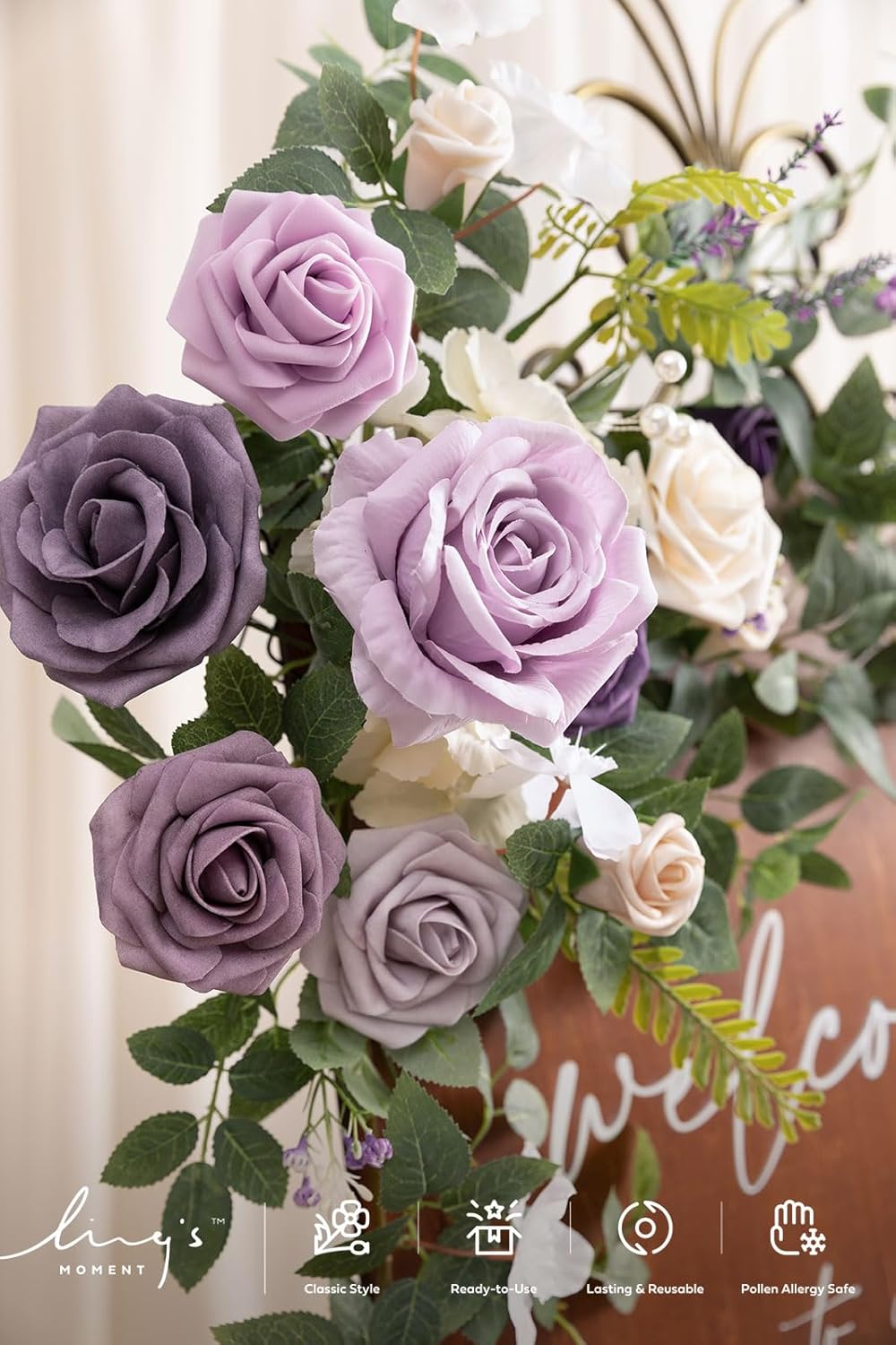 Ling's moment 2pcs Wedding Flowers Garland Artificial Floral Swag Arch Decorations Greenery Arrangements Lilac & Gold Ceremony Reception Garden Easel Wall Home Entryway Outdoor NOT Include Sign