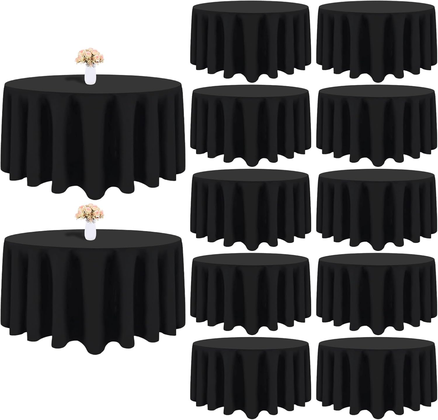 12 Pack Black Round Tablecloth 108 Inch Black Table Cloth Stain and Wrinkle Resistant Round Tablecloths Reusable and Washable Polyester Fabric for Buffet Wedding Party and Banquet