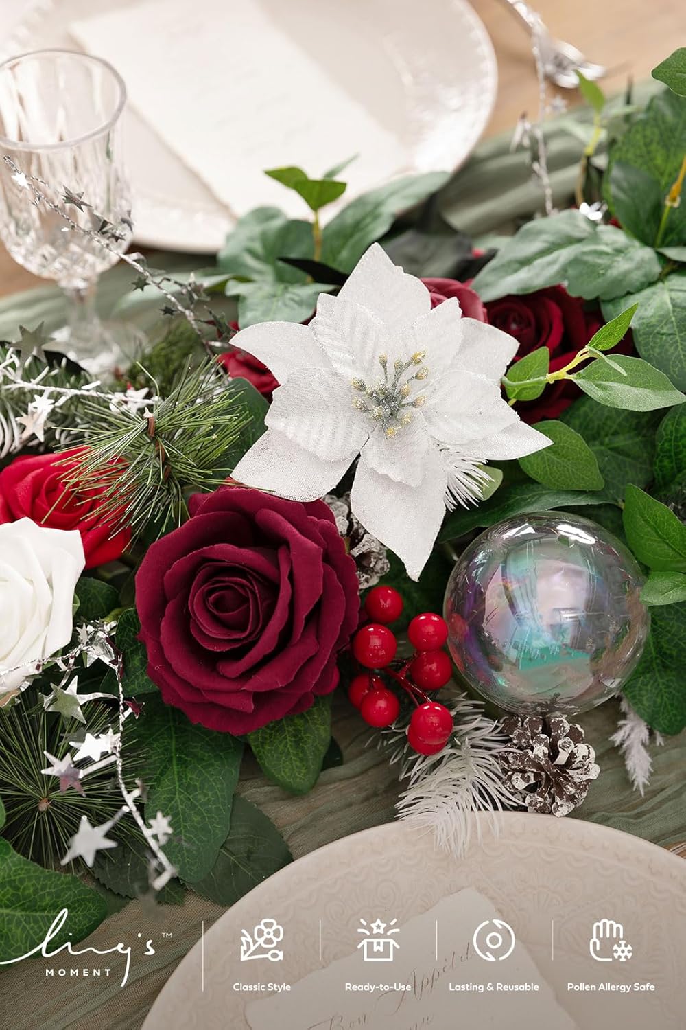 Ling's moment Eucalyptus Garland with Flowers 6FT,Table Runner with Flowers Marsala Mantle Decor Handcrafted Wedding Centerpieces for Rehearsal Dinner Bridal Shower | Red & White