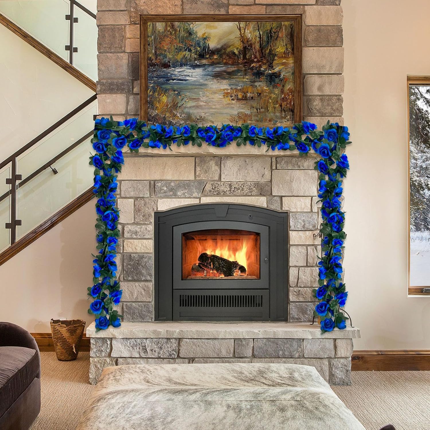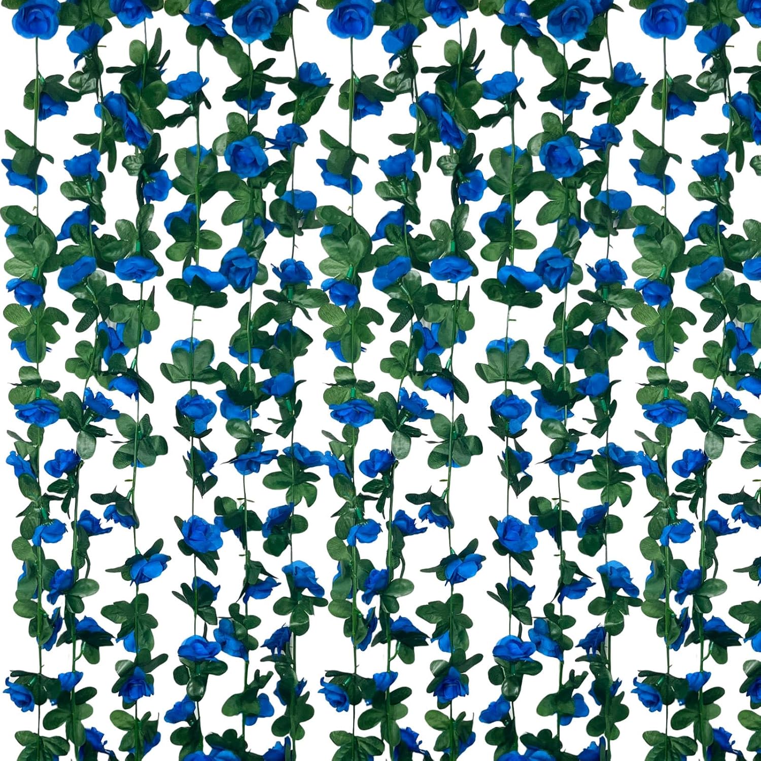 8Pcs 63Ft Royal Blue Rose Garland, Fake Rose Hanging Flowers, Artificial Flower Vine, Hanging Floral Vine Garland for Wedding, Birthday Party, Wall Arch, Halloween, Christmas Garden Backdrop Decor