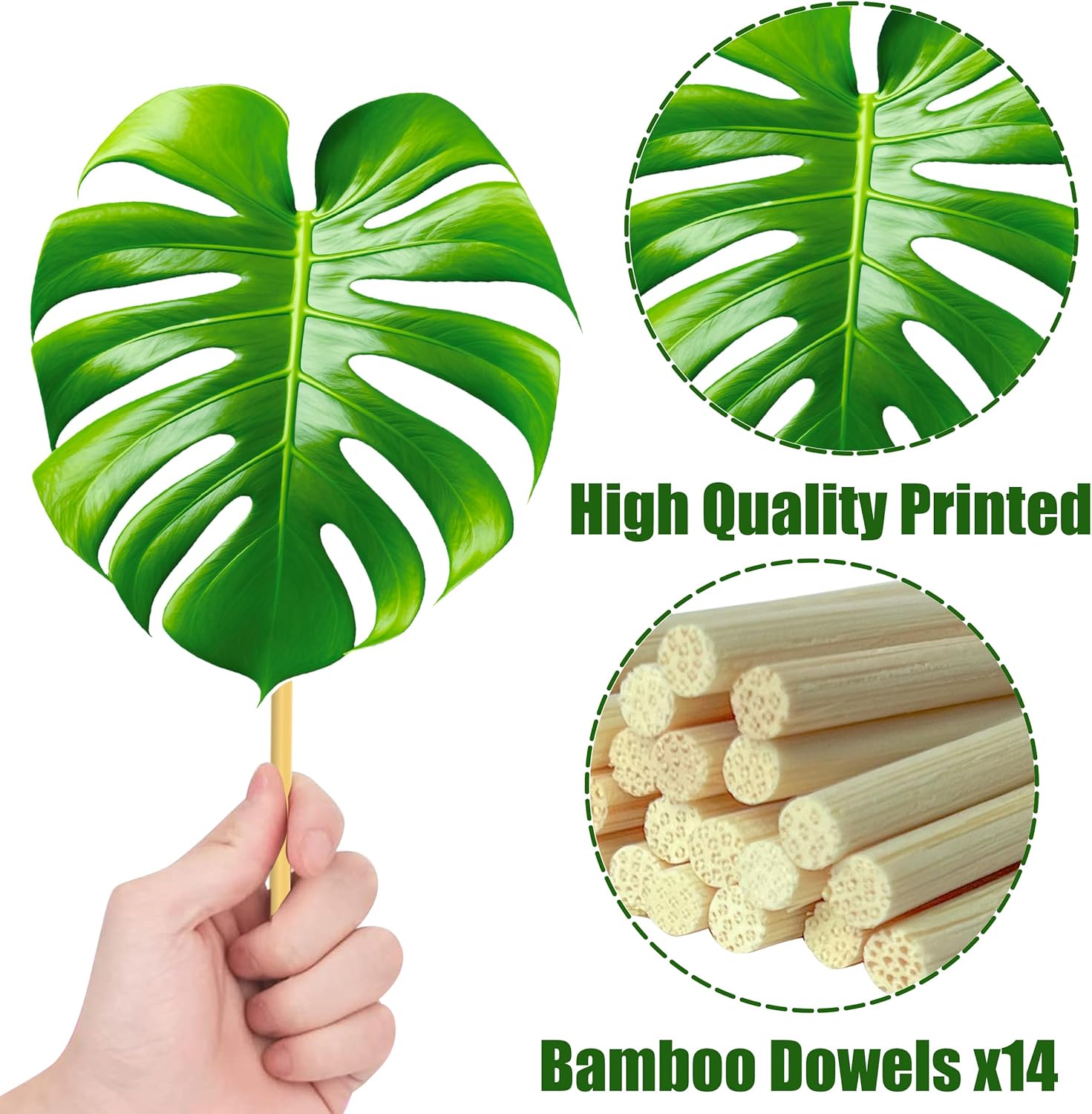 - Palm leaf centerpiece sticks: 14-piece tropical leaf decoration set includes assorted Monstera and palm leaf designs with wooden sticks and assembly stickers for easy setup