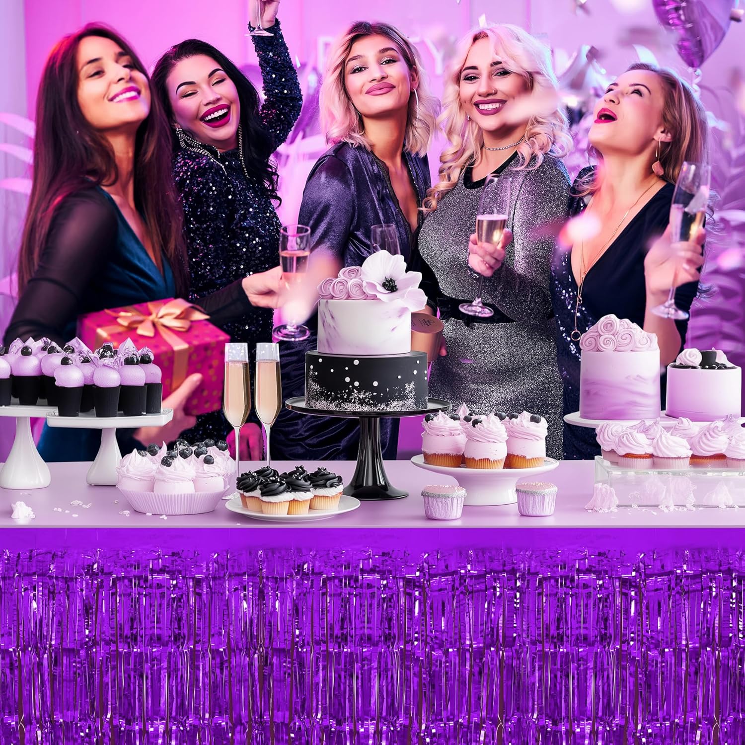 2 Pack Light Purple Dark Purple Table Skirts, 29x108" Metallic Foil Tinsel Fringe Table Skirt for Rectangle Tables Streamer Curtains Backdrop, Party Decorations for Birthdays, Weddings, Holidays
