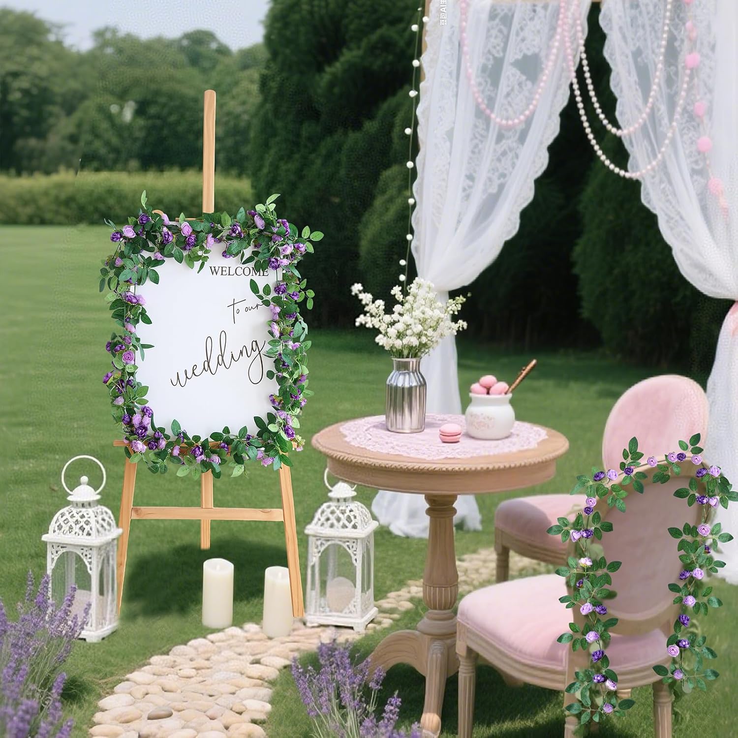 4 Packs Artificial Rose Garland: 31.48Ft Each Fake Flower Vine with Improved Color & 10 Ties for Wedding Arch Backdrop, Home Wall Party Decor, Christmas Decor, Purple