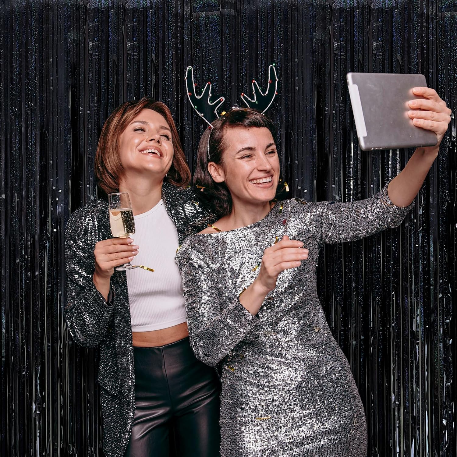 - Party Decorations:Black fringe backdropβ perfect for photo backdrops, parties or glow events! This black tinsel curtain party decorations reflects dazzling colors under light. Easily hangs on walls or windows, pairs perfectly with LEDs and balloons.