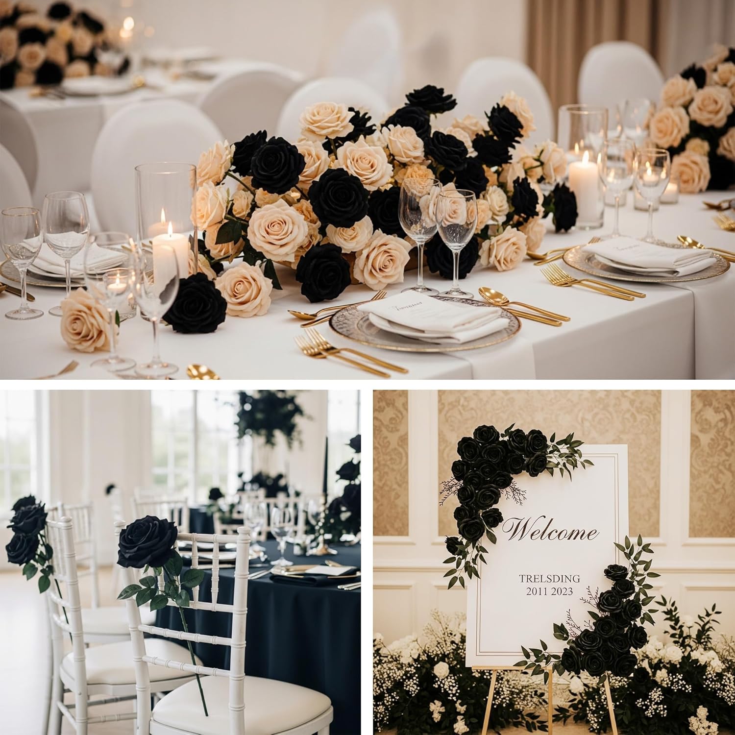- Abundant Black Roses Set: With 60 pieces of premium velvet and silk black roses artificial flowers, this bulk set creates lavish wedding centerpieces, Halloween decorations, or dramatic table garland effortlessly. Ideal for event preparation like baby showers and Valentine's Day, it provides ample black roses bouquet for DIY centerpieces, wedding photo booth setups, or home decoration projects—ensuring you never run short for any occasion