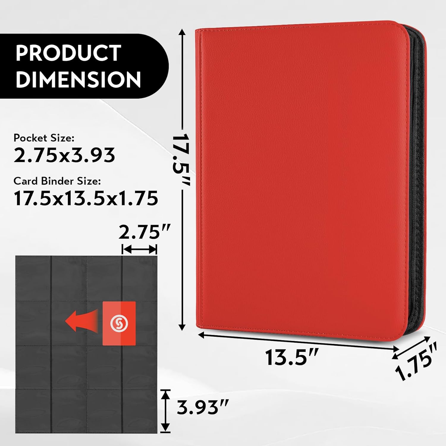 1000+ Pockets Trading Card Binder, Premium 16 Pocket Card Binder, Ringless Side Loading Collection Album Holder Folders for MTG, TCG, Game Cards & Sports Cards (Red)