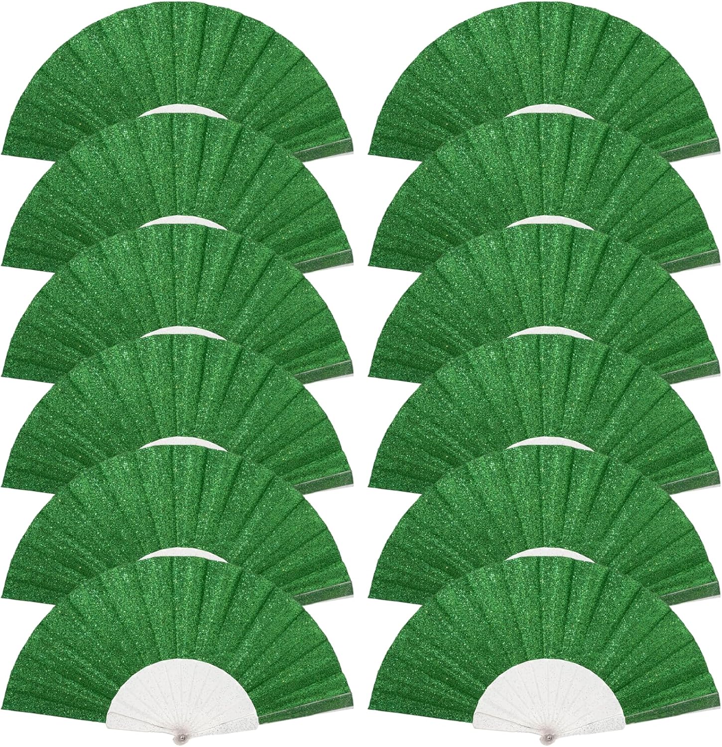 12 Pack Handheld Fan,Folding Hand Glitter fan with Shining Transparent Fan Rib – Ideal for Wedding, Church, Festival, Dance, Tea Party, Club, and EDM Accessories, Light green