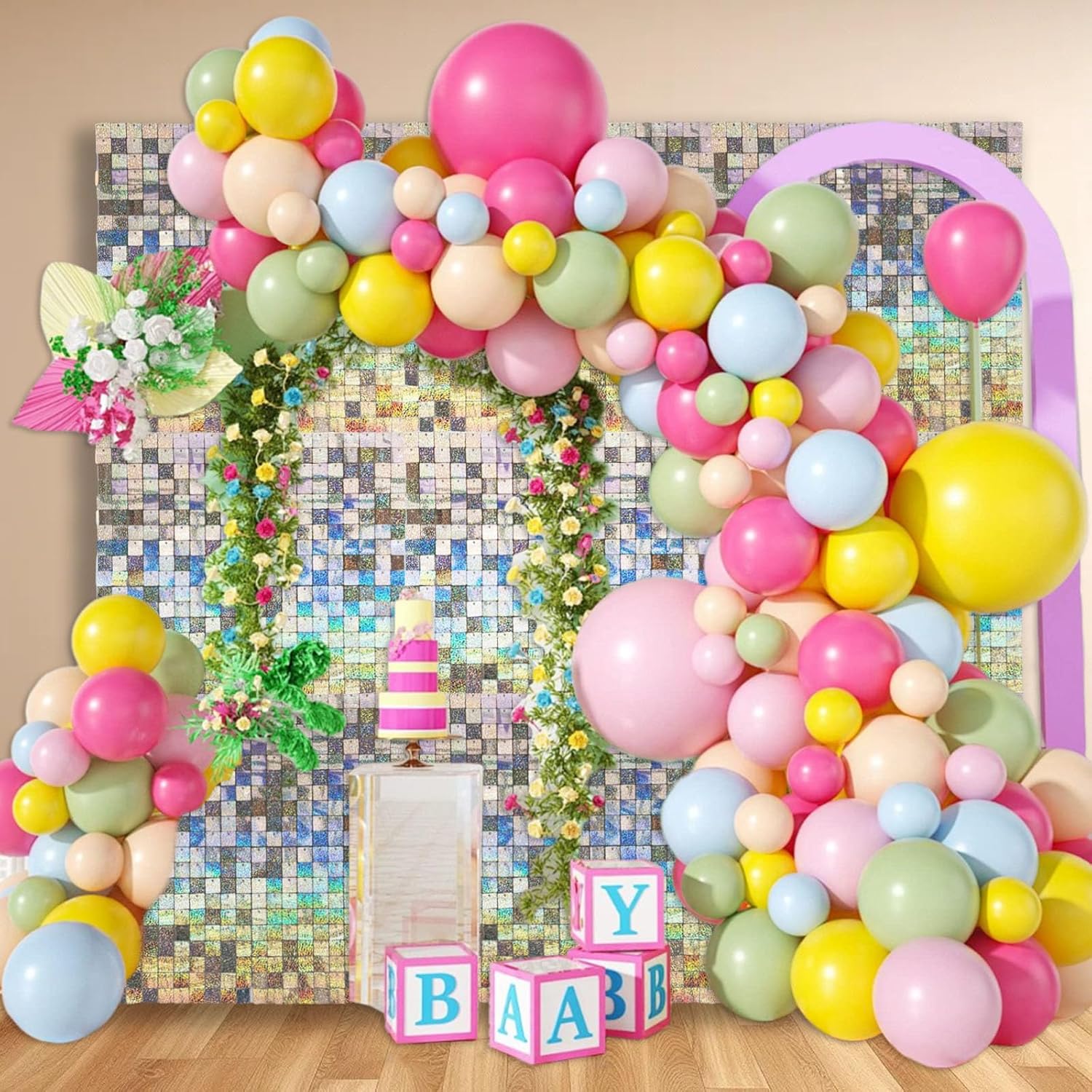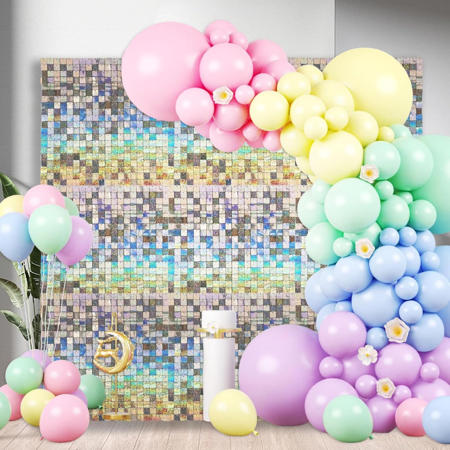 - 【Simple Installation】Laser sequins wall panel backdrop installation is very simple. Just align the snaps to fasten. At the same time, we provide enough cable ties for fixing. We also provide installation instructions.(Note:The Laser Shimmer Backdrop will show colorful colors under sunlight or light)