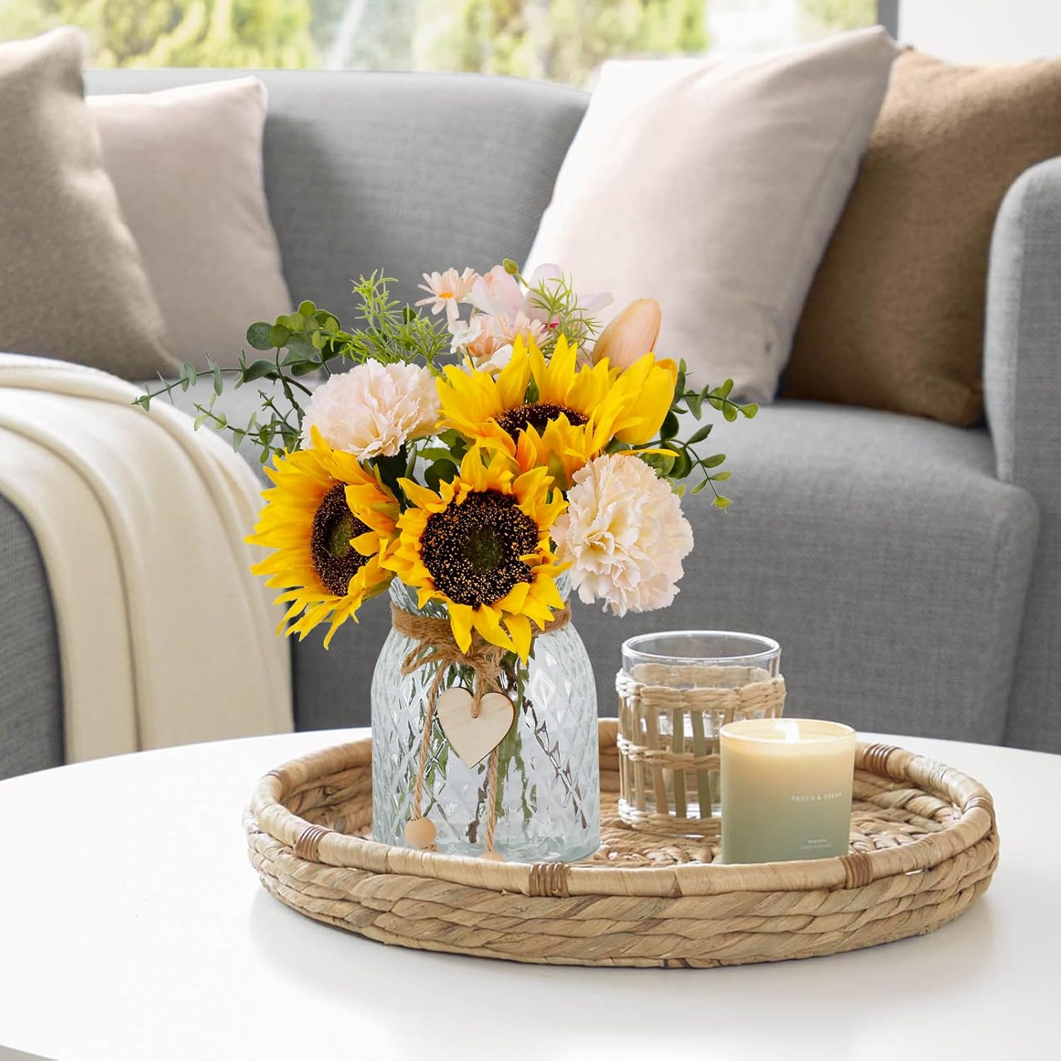 Fake Flowers in Vase,Artificial Sunflower Bouquets in Vase with a Flower Arrangement Holder,Table Centerpieces for Dining Room,Flower Centerpieces for Tables,Faux Flowers