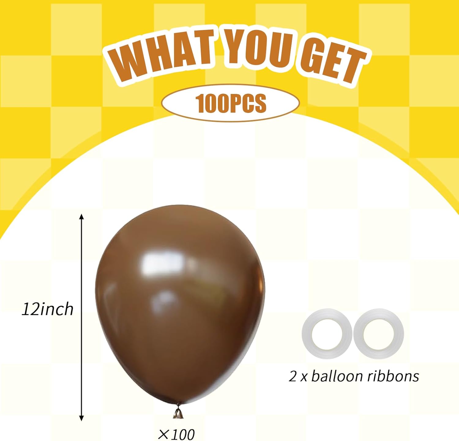 - COMPLETE DECOR KIT: 100 premium 12-inch dark brown latex balloons + 66 feet of matching ribbon. Everything needed for stunning balloon arches garlands clusters or backdrops – no extra purchases required!