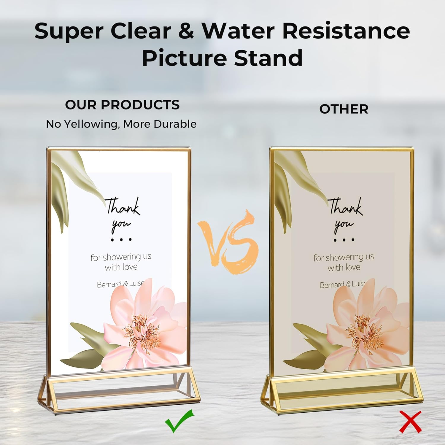 - Gold Picture Frames Double-Sided Vertical Display: Features a smart back-to-back vertical stand to showcase table numbers, photos, or menus from both sides. Ensures 180° visibility for guests, making every angle stunning at parties or receptions.