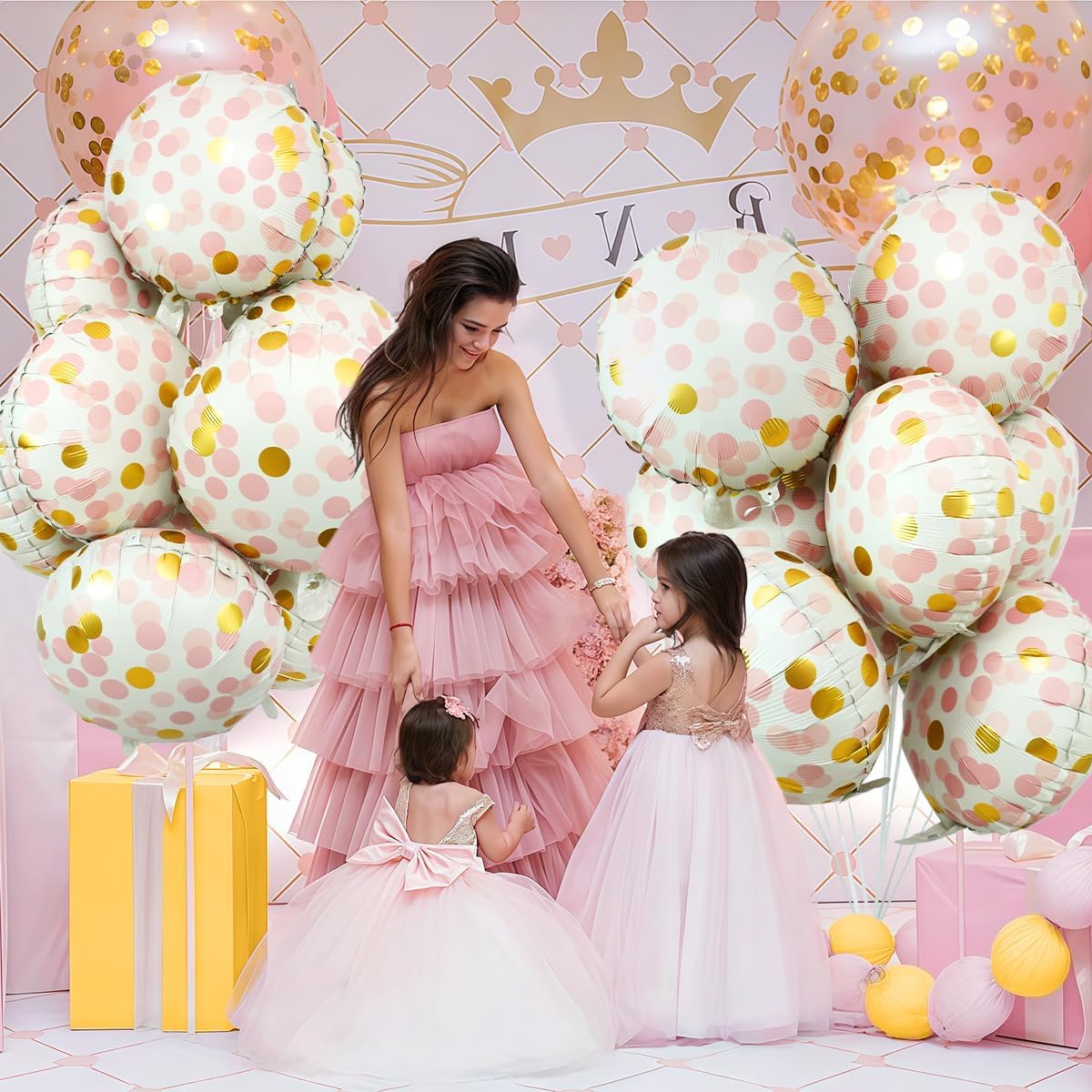 - Perfect Foil Balloons for Parties: Celebrate the parties in style with our Round Foil Balloons! Each 18-inch foil balloon is adorned with some glossy pink gold polka dots in a chic, designed to make your celebration stand out. You can create a stunning balloon display perfect for any occasion