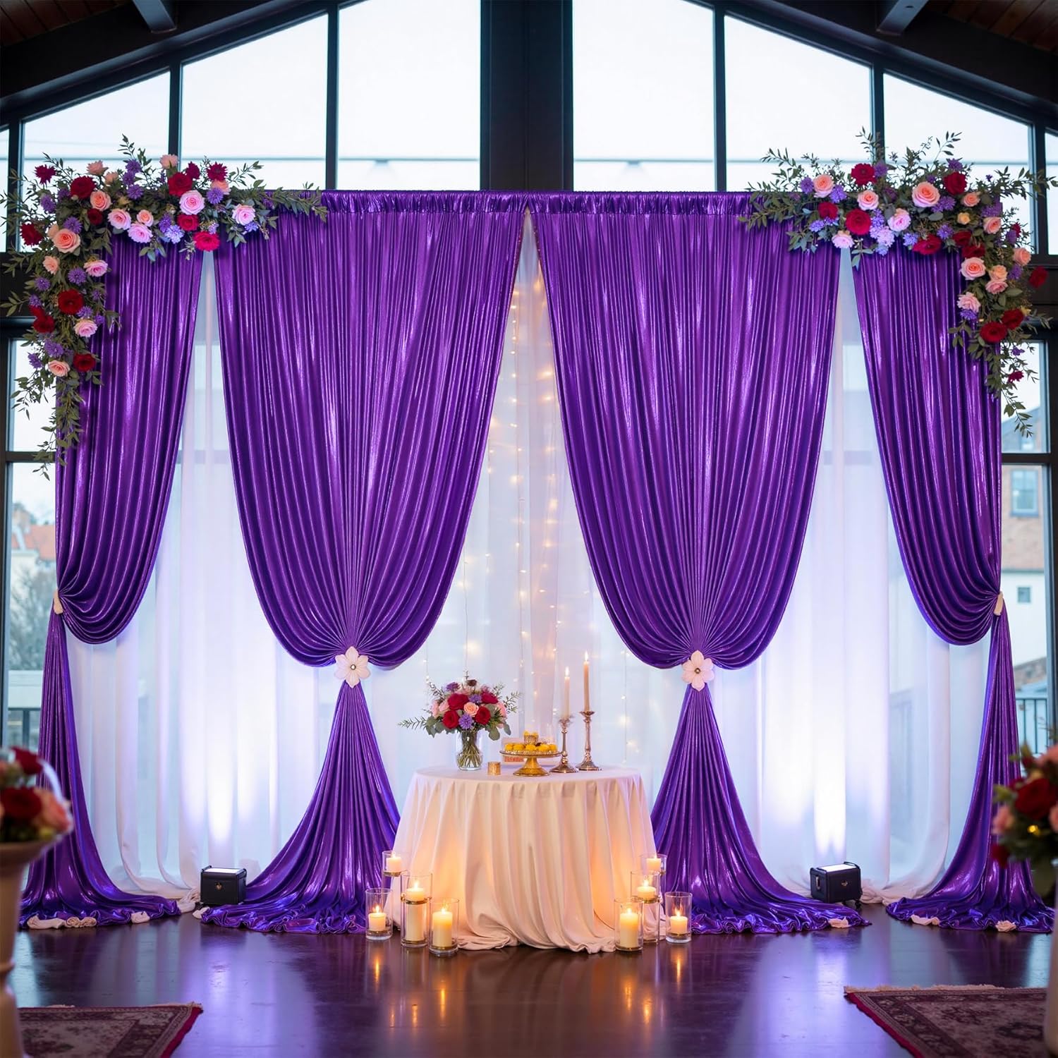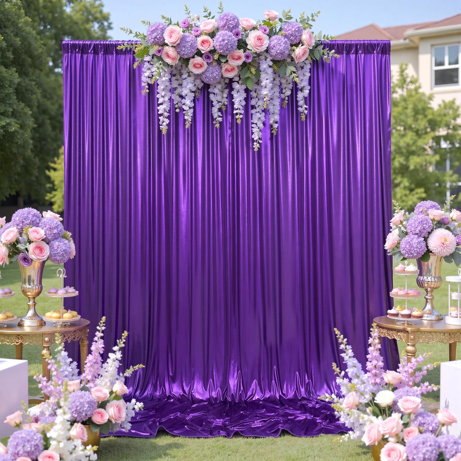 - For Kinds of Occasions - Our 10ft purple sequin glitter polyester drapes are perfect for kinds of occassions. Such as wedding party, baby showers, birthday parties, photo booth,anniversary,graduation, home decoration and more.