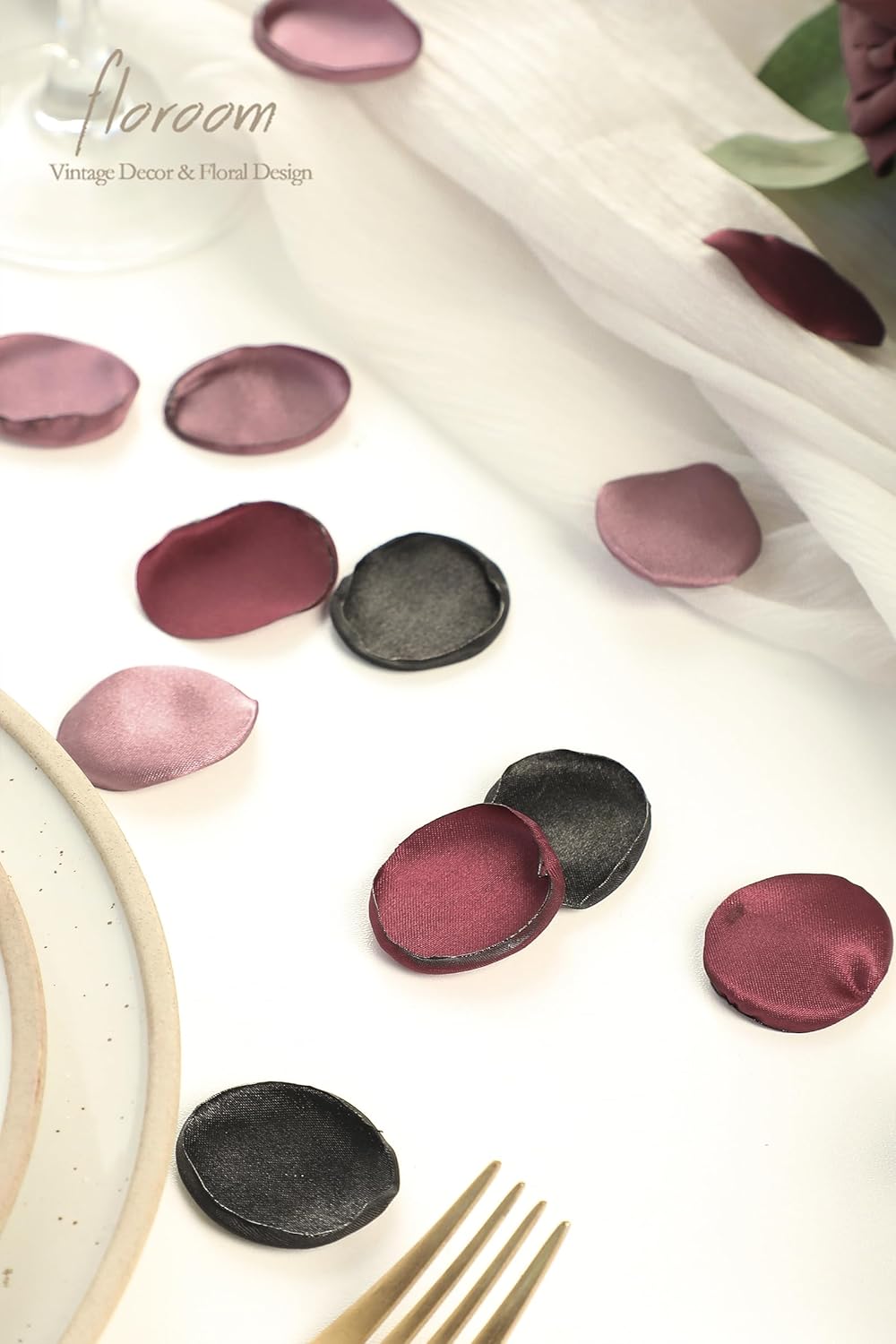 Floroom 300pcs Rose Petals Black Burgundy Faux Silk Flower Petals for Wedding Flower Girl Basket Aisle Scatter Dinner Table Centerpieces Party Confetti Bridal Shower Romantic Night Decoration