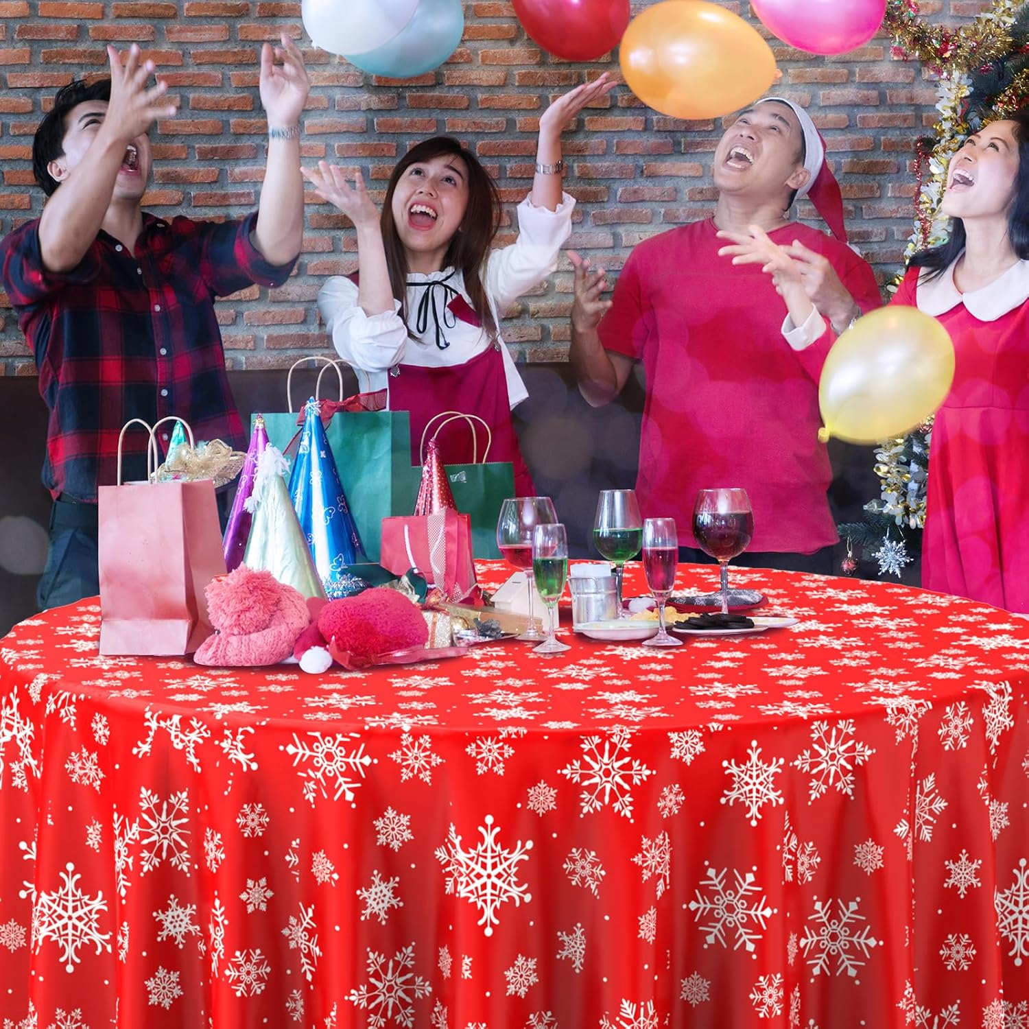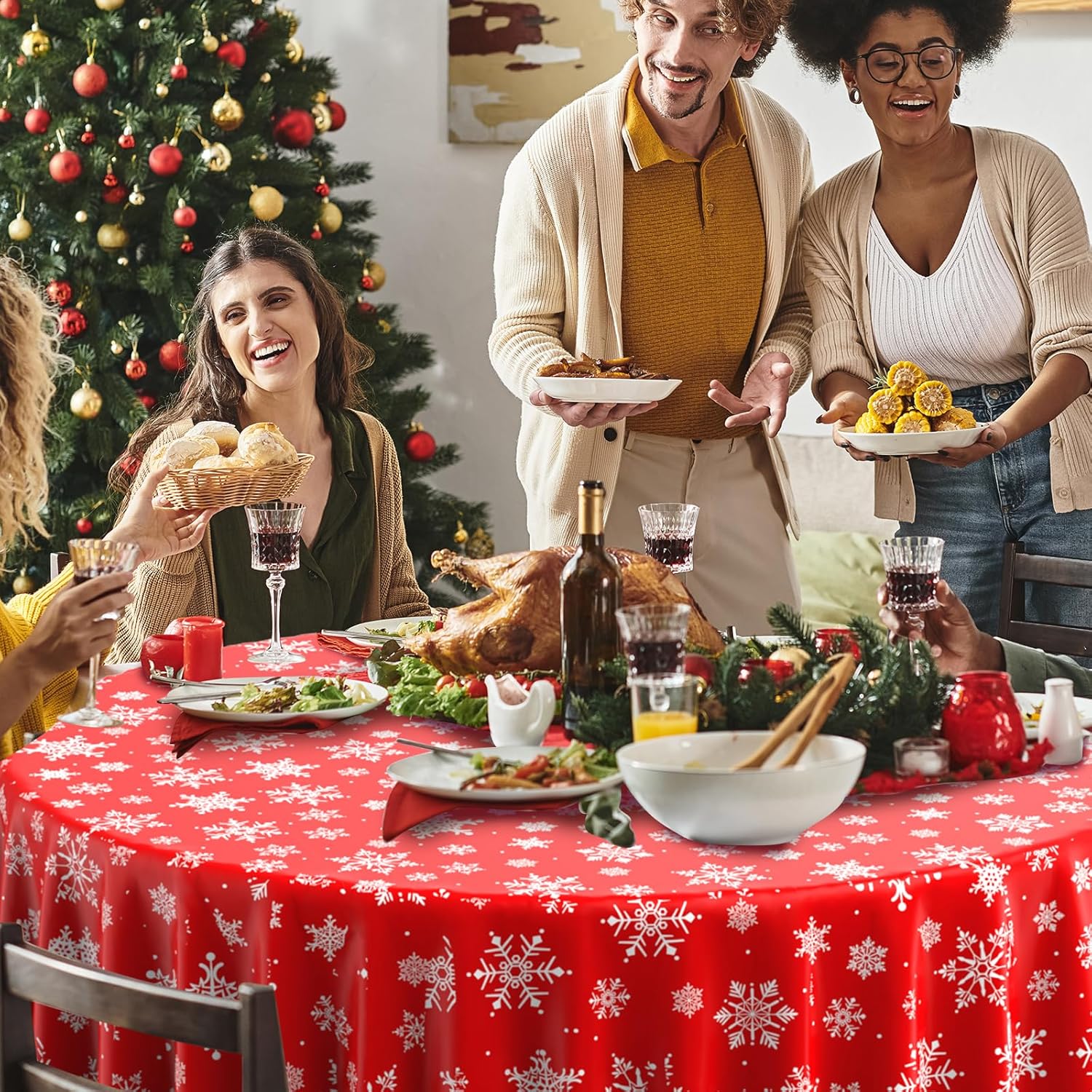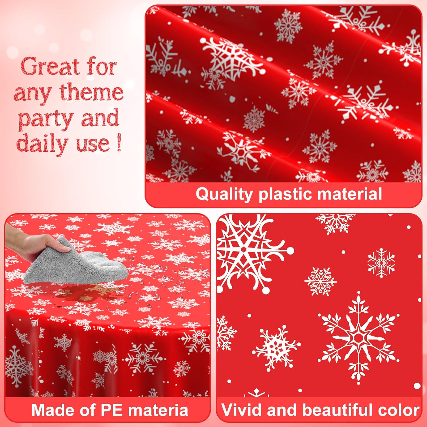 - Extra large size: these red snowflake Christmas party tablecloth measures approx. 84 inch, which fits for various-sized tables that can accommodate 8-10 people, Itβs large enough for your to hold a winter holiday and Christmas theme party with your family and friends to share happiness