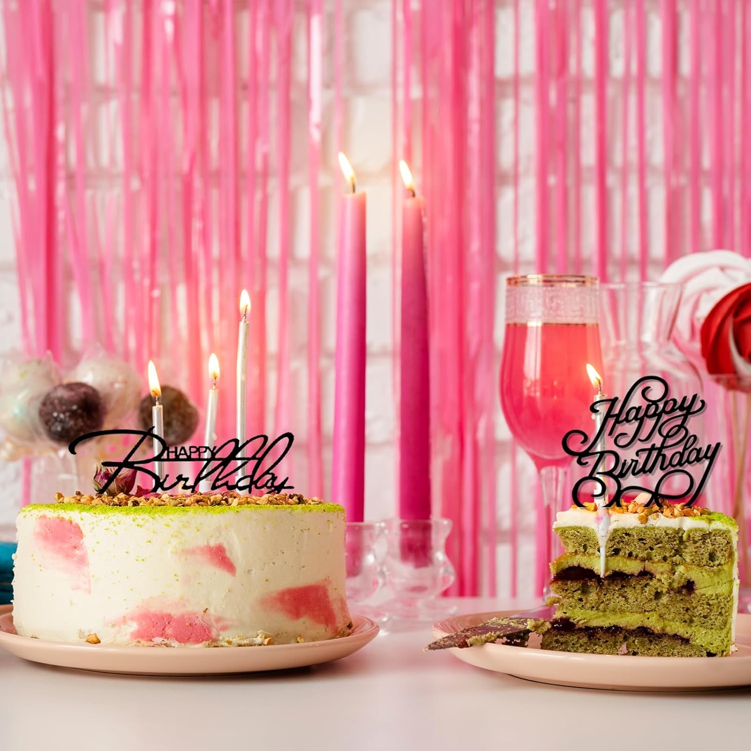 10 PCS Black Birthday Cake Topper Mirror Acrylic Happy Birthday Cake Toppers Double-Sided Dessert Decorations for Girls Women's Party Supplies