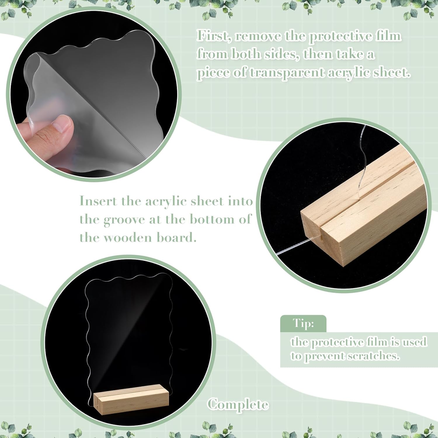 - Acrylic Sign Blanks: This set includes 10 elegant 5x7 inch scalloped acrylic plaques with wooden stands, perfect for creating DIY wedding table numbers, menus, or event signage
