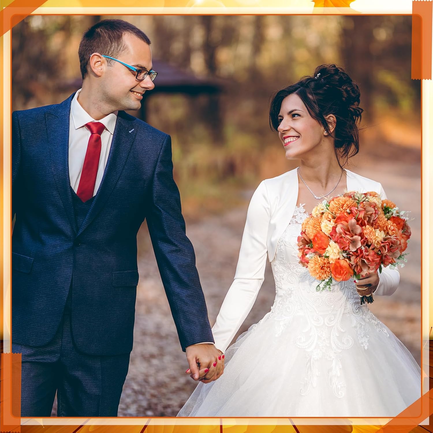Tigeen Artificial Flowers Artificial Peonies Silk Flowers Faux Peony Fake Peony Silk Hydrangea Bouquet for Wedding Table Centerpiece Floral Vase Decor (Bright Orange,12 Bundles)