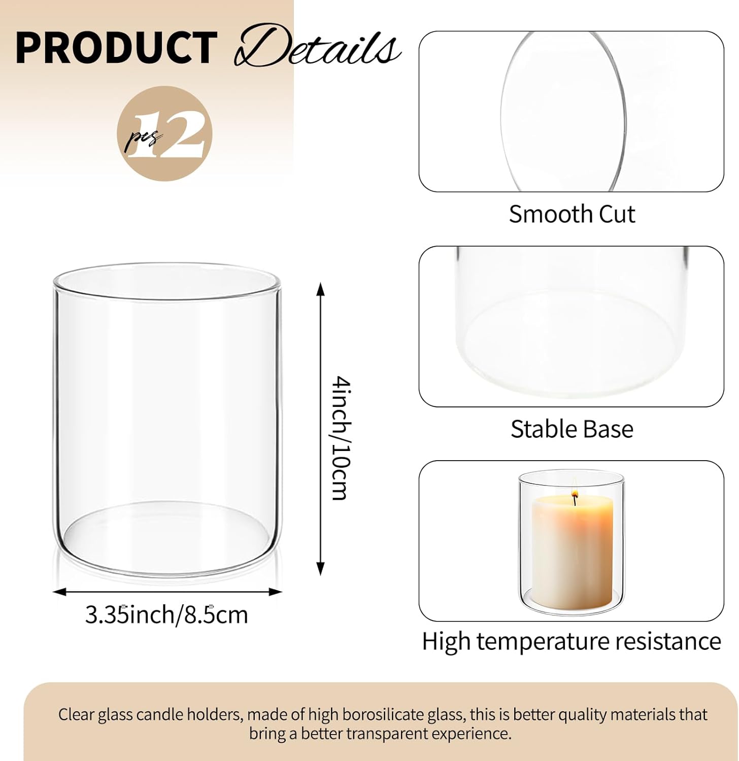- ✅ Premium High-borosilicate Glass: Crafted from food-grade, heat-resistant borosilicate glass, our vases for centerpieces ensures exceptional clarity and durability. Designed with a solid base and smooth, polished rim, this flower vase provides stability and safety during use. This sturdy material can withstand greater temperature changes than regular glass. Perfect for use as a hurricane floating candle holder or for pillar candle holder.