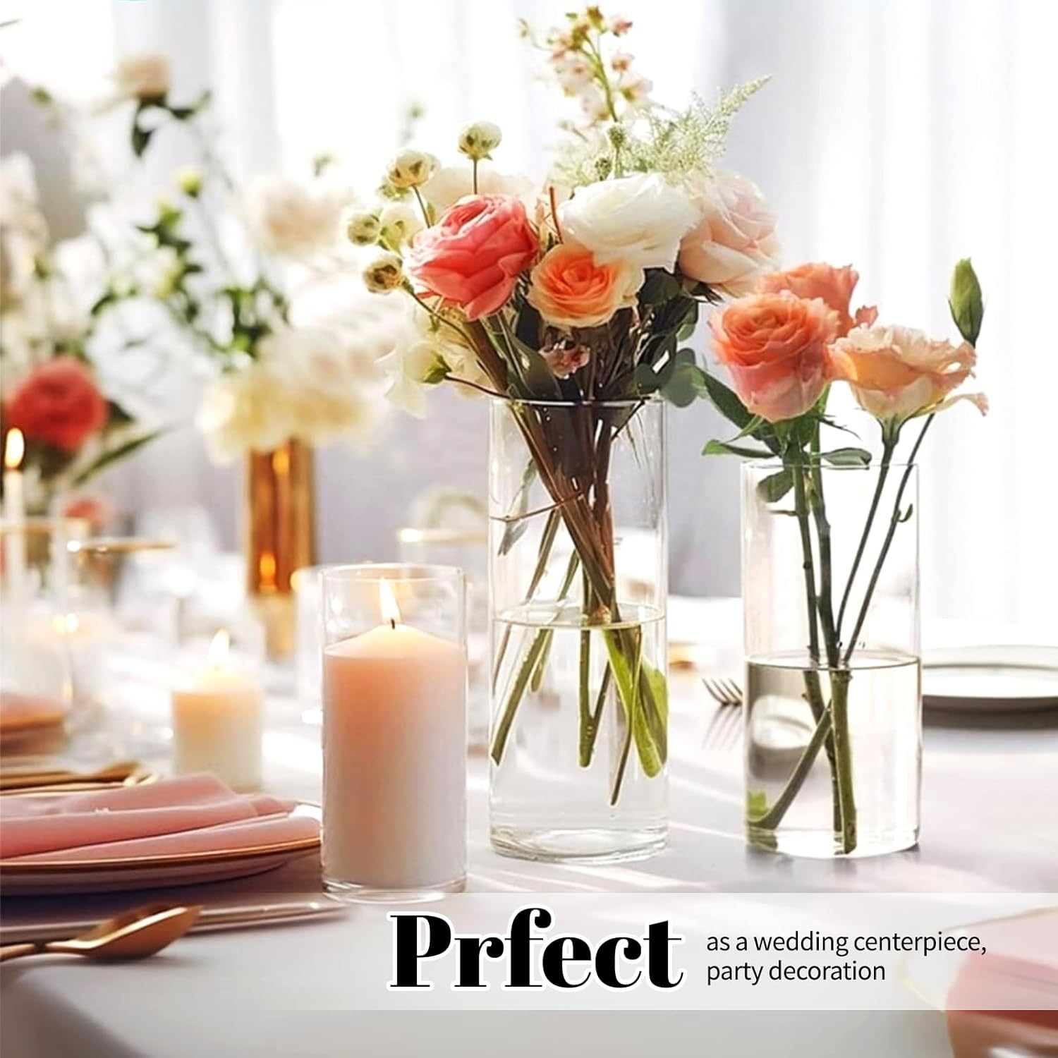 - ✅ Classic Cylinder Vase: This vase set contains 12 pack clear cylinder vases, the height is about 4 inch and the diameter is about 3.35 inch. Our glass vases are available in sizes from 3.35*4" to 3.35*16", ideal for various flower vases, vases for centerpieces, and candle holders. Its versatile uses makes it perfect for creating elegant centerpiece table decorations.