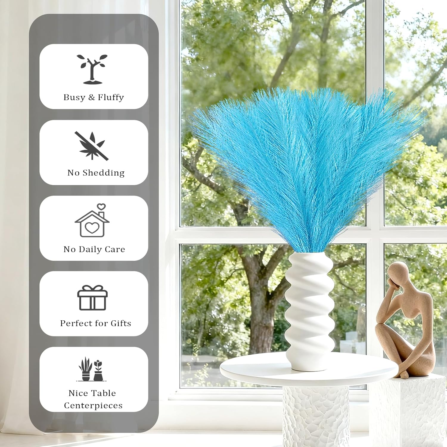 50pcs Faux Pampas Grass, 21.6" Short Artificial Pompous Grass Branches for Vase Filler Home Table Centerpieces Wedding Decor (Light Blue)