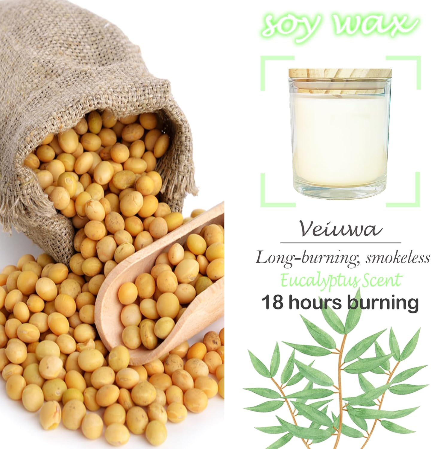 - 🪔🪔LONG BURNING TIME: Our soy candles are made of high quality glass and burn-resistant candles, each one can last up to 24 hours and give off a light eucalyptus scent, which makes it long lasting to create an elegant atmosphere for you