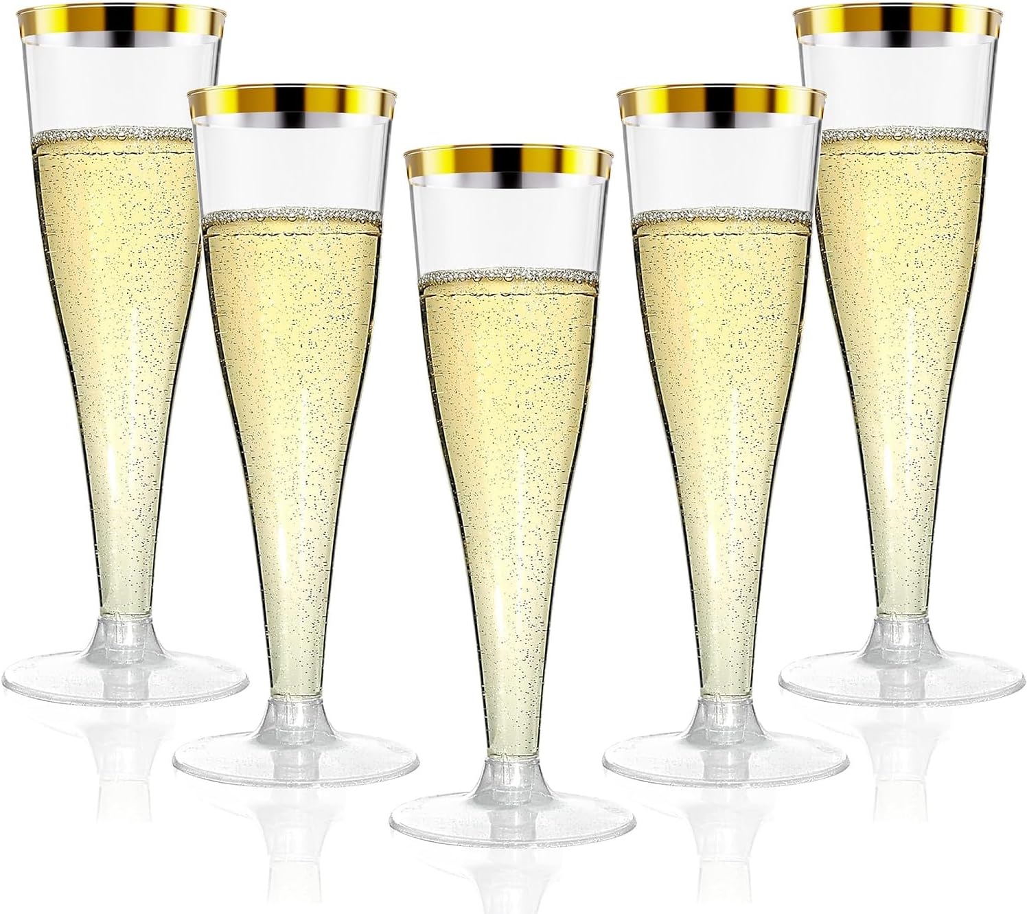 - 100 Pack Value β Includes 100 gold rim plastic champagne wine glasses (4.5oz), enough for big celebrations.