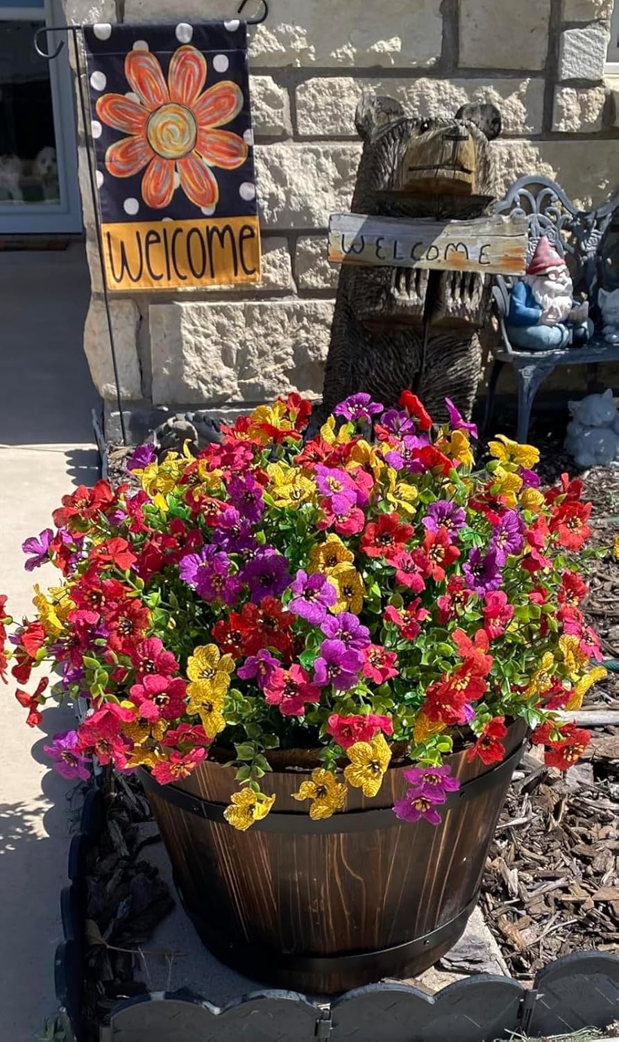 - High Quality&Water Resistant: High quality silk material daisy flowers and plastic eucalyptus leaves. UV and all weather resistant. It will blooms all year round.