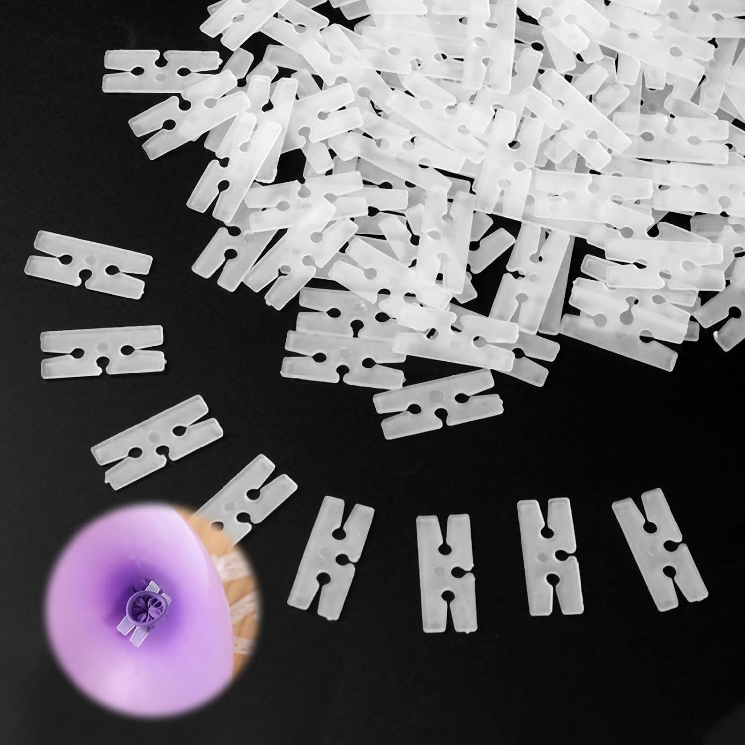 - 100-Pack of H-Shape Balloon Clips - Includes 100 clear plastic balloon ties, perfect for bulk balloon decorating—enough for large events like weddings or birthday parties, with spares for last-minute additions.