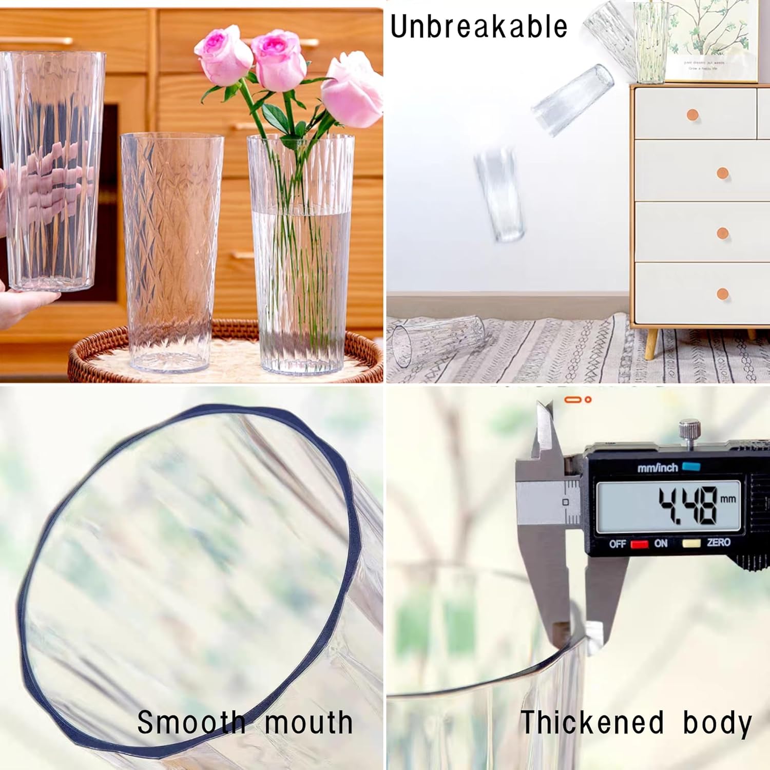 - 🌷【Sturdy and durable】These vases are made of high-quality acrylic and can withstand daily use without breaking. Say goodbye to fragile glass vases. Our indestructible tall windproof vases give you peace of mind and focus on creating amazing flower arrangements without worrying about accidents or accidents.
